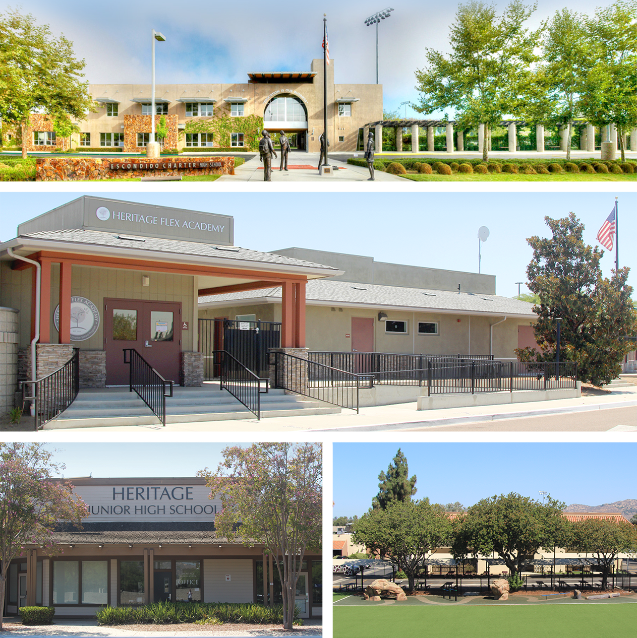 What started as one small high school had grown into four schools with various educational pathways serving close to 2,500 students: Heritage Elementary School, Heritage Flex Academy, Heritage Junior High School, and Escondido Charter High School.
